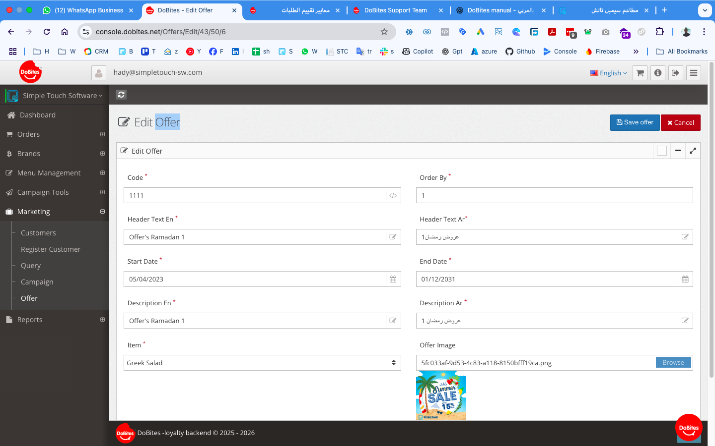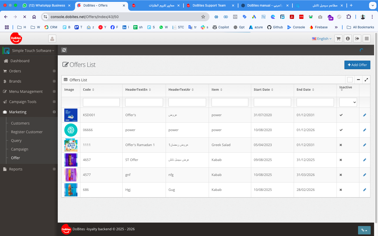 يُتيح قسم العروض في منصة دوبايتس للمطاعم والكافيهات إضافة وإدارة العروض الترويجية الخاصة بهم، سواء كانت خصومات على منتجات معينة أو عروض موسمية مرتبطة بفترة زمنية محددة.